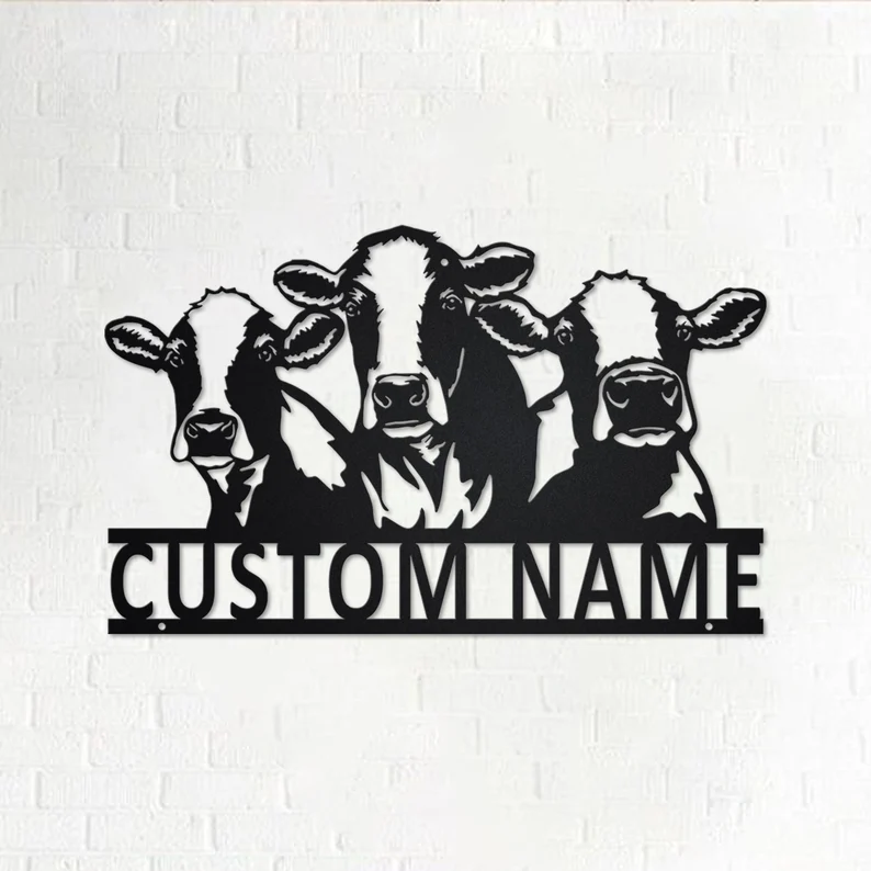 Add some country charm with this personalised cow sign! CNC cut from 3mm mild steel , powder coated in a colour you love , and finished with 2 bolt holes for easy fitting.